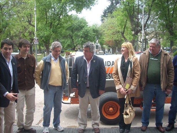 El intendente Carlos Selva entregó ayer al medio día dos importantes equipos especiales para fumigación a los integrante del Grupo de Productores de Duraznos Resurgir durante un acto realizado en la puerta del Palacio Municipal de nuestra ciudad.