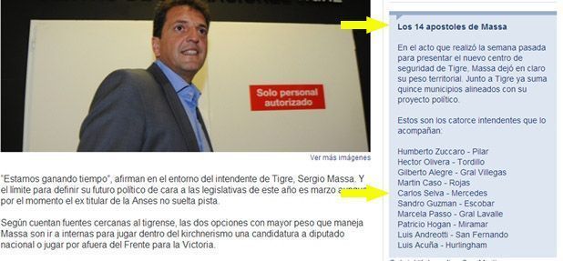 LaPoliticaOnline y en varias ocasiones La Tecla, espacios digitales dedicados a las noticias políticas, dan al intendente Selva como un firme hombre de acompañamiento a Massa y a Scioli, más allá de las estructuras kirchneristas de las cuales está alejado en términos estructurales, pero, donde sostiene el sello, pues, su bloque, es el del Frente para la Victoria en el Cuerpo Deliberativo y fue quién llevó la boleta oficial en las últimas elecciones y potencialmente la llevaría en las próximas, según algunas fuentes, que, a su vez, juegan con que Massa iría por un lugar en Diputados y luego a la gobernación con un Scioli presidente en caso de no salir la re reelección para Cristina Fernández. Otros, más osados, especulan con que Massa, en 2015, iría derecho por la presidencia, pero, como se sabe, son todas especulaciones y en política hasta en cuestión de horas es difícil de apostar.