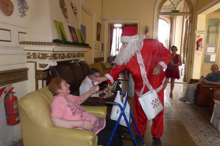 Papá Noel recorrió varios lugares en la previa de Nochebuena, como Casa del Niño y el Hogar Villa Abrille. Hasta este lugar se llegaron los jóvenes del Frente Renovador y agrupación 17 de octubre para compartir un momento especial con los abuelos.