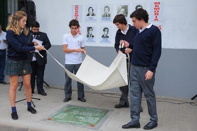 En la placa, delante del Colegio San Patricio se recuerda a los ex alumnos Carlos Gustavo Agosti, Carlos Martín Cardinal, Luis Eduardo Goicochea, Francisco Manuel Heredia, Esteban Santiago Ojea Quintana, Ignacio Pedro Ojea Quintana, Félix Eduardo Picardi, y Carlos Miguel Tillet.