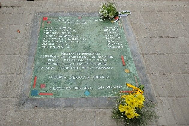 En el marco de los actos conmemorativos por el Día de la Memoria, Verdad y Justicia ante un nuevo aniversario del inicio fatídico del golpe militar de 1976, en la mañana de este jueves se llevó adelante un emotivo momento de reflexión al recordar a los ocho jóvenes mercedinos, egresados del Colegio San Patricio, que fueron secuestrados, desaparecidos o asesinados. Ver más fotos en fan page
