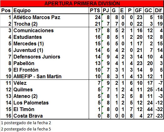 Con estos resultados, la Carbonilla quedó a un partido de Atlético Marcos Paz, ambos con puntaje ideal, mientras que el blanquinegro llegó al quinto lugar de ubicación.