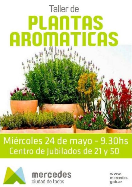 En el Centro de Jubilados de calle 21 y 50, se realizará el próximo miércoles 24 de mayo, a partir de las 9:30 horas, un Taller de Plantas Aromáticas. Los interesados pueden presentarse en el centro de jubilados y realizar las consultas e inscripción correspondiente.