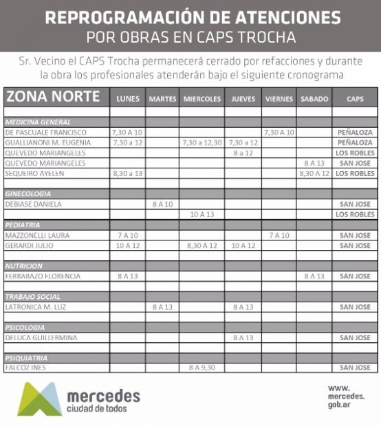 De esta manera, la gran cantidad de vecinos que habitualmente concurren a Trocha, pueden seguir sus atenciones reprogramando las consultas, momentáneamente, en los espacios de atención en San José y Los Robles.