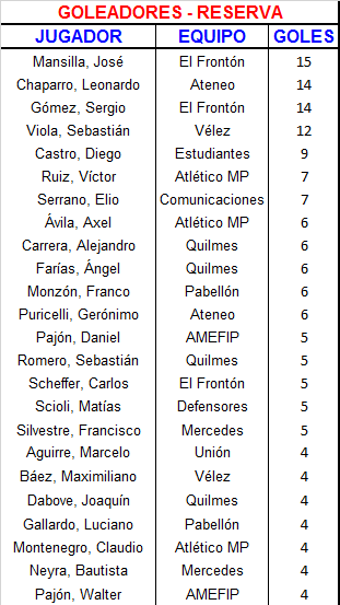 | AMEFIP | 2 | Matías Baiardi (2) |