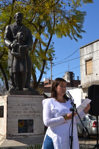 A la hora de hablar ante los presentes, la titular de la Biblioteca Sarmiento tomó la palabra. Lo mismo hizo una de las alumnas del Instituto Superior de Formación Docente N° 137 (Escuela Normal) que destacó la tarea de enseñar y aprender. Por último, fue el Intendente Ustarroz el que tomó la palabra y destacó la necesidad de una ciudad que eduque.
