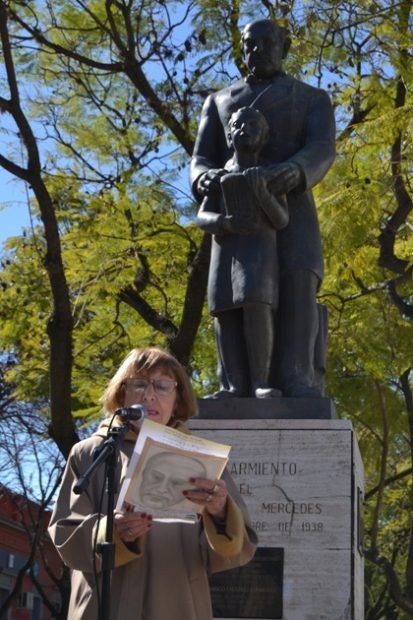 En la mañana de este 11 de septiembre, en el busto que recuerda a Domingo Faustino Sarmiento en la 30 y 29 se realizó un pequeño homenaje al «gran maestro» argentino y a todos los docentes de la comunidad.