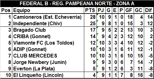 Para malos resultados, este sábado se sumó el de la victoria de ADIP ante Viamonte por 3 a 2, y los de La Plata alcanzarón al blanquinegro, quedará esperar por el resultado de Everton y el de El Linqueño, equipos que hasta el momento están en el fondo de la tabla y que si ganan, empezarán a preocupar el futuro de un Club Mercedes que viene haciendo un buen torneo, pero que no tiene eficacia en el área rival y lo paga caro.