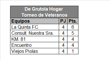 La primera rueda para los más grandes de Désima ya es historia. Los encargados de efectuar el cierre fueron Viejos Piolas y Encuentro, quien se aprovechó de un rival débil y golpeado para golearlo siete a uno. Pablo Martínez marcó un gran Hat-Trick, Leandro Valerga hizo dos y Dante Petroni junto a Matías Zunino los restantes. Oscar Ríos fue el encargado de anotar para Viejos Piolas, que buscará mejorar su performance para encarar la segunda mitad del torneo.