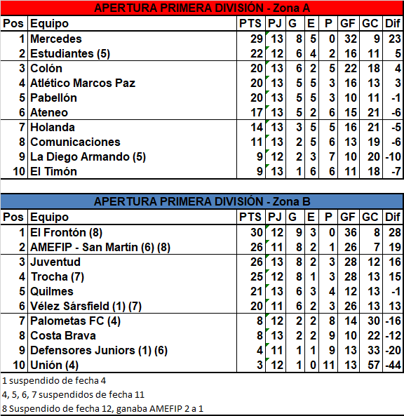En cuanto a la clasificación a la Liguilla, quedan 15 puntos por disputar y en la Zona A Club Mercedes ya tiene pasaje y Estudiantes, de conseguir cuatro puntos y Holanda no sumar, también lograría el primer objetivo. La Zona B tiene mucha diferencia entre los primeros seis y los últimos cuatro. El Frontón, más allá de la resolución del Tribunal de Penas sobre el partido que tiene suspendido ante AMEFIP, ya está en Liguilla. Lo mismo ocurrirá con Barrio San Martín si le dan por ganado el partido, o si este fin de semana suma al menos un punto o pierde este fin de semana Palometas y Costa Brava. Misma situación para Juventud, que con una derrota granate y una roja o un empate propio, asegurará objetivo.