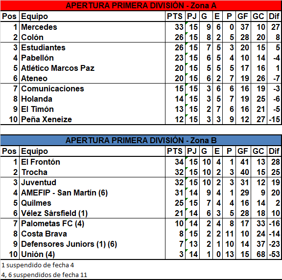 La Carbonilla comenzó ganando con un gol de tiro libre de Pablo Montuori, pero luego los del barrio El Molino llegaron al empate a través del gol de penal de Lucas Alfonso. Con este resultado, los de Juan Ignacio Menendez no pudieron alcanzar a El Frontón en la cima de la Zona B y ahora comparte el segundo lugar con Juventud, mientras que AMEFIP Barrio San Martin, que adeuda un partido, tiene todo por delante para superarlos, ya que solo está un punto abajo. Por el lado de Velez, quedó a un punto de la clasificación a la Liguilla, salvo que Palometas no gane el fin de semana y eso decretará que los de Ballesteros pasen de ronda.