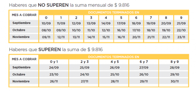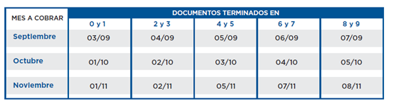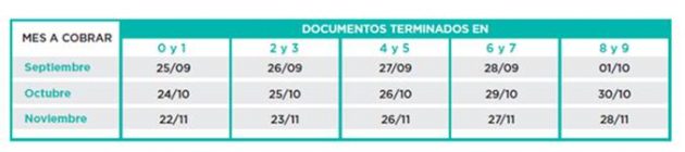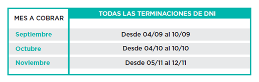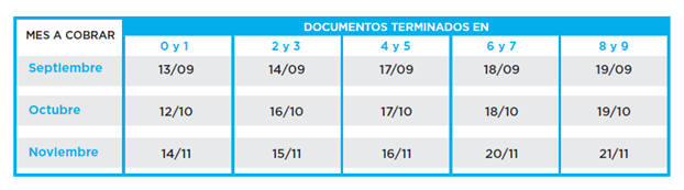 PLAN 1: tienen tiempo para cobrar sus haberes hasta las siguientes fechas: septiembre (10/10); octubre (12/11); noviembre (12/11).