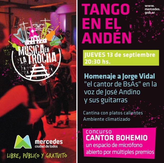 El próximo jueves 13 de septiembre, se llevará a cabo una nueva edición de Tango en el Andén. Se homenajeará a Jorge Vidal, «el cantor de Buenos Aires». Actuarán José Andino y sus guitarras.