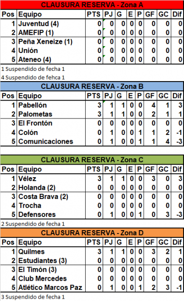 La lluvia del fin de semana opacó una seguidilla de partidos que venía teniendo la Liga Mercedina en el final del Apertura. El inicio del Clausura, que está corto de tiempo, empezó con partidos suspendidos debido a que la gran caída de agua no dejó los campos de juegos disponibles. En este sentido, no hubo empates y Quilmes, Palometas, Pabellón y Vélez comenzaron con una victoria.