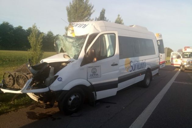 El transporte de pasajeros es una empresa de Chivilcoy Santorini que suele frenar en Mercedes para que nuevos pasajeros suban. El chofer fue identificado como Facundo Sebastián Peñalba. Los heridos circulaban en la combi y sufrieron distintos traumatismos. En tanto fuentes de Bomberos indicaron que el chofer del camión, identificado como Diego Martín Kranevitte, no sufrió heridas.