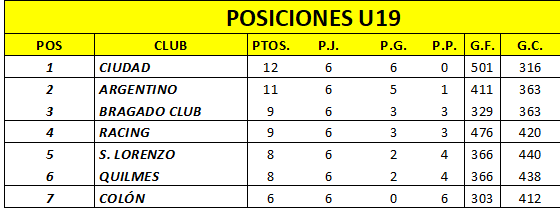 CIUDAD DE SALADILLO 83: Cichanowsky (C) 17, Moreyra 17, S. Mazza 16, Ontivero 10, F. Sivero 8, F. Idoeta 8, T. Dolcee 7, I. Idoeta, Lucena, Tello. DT: F. Salas
