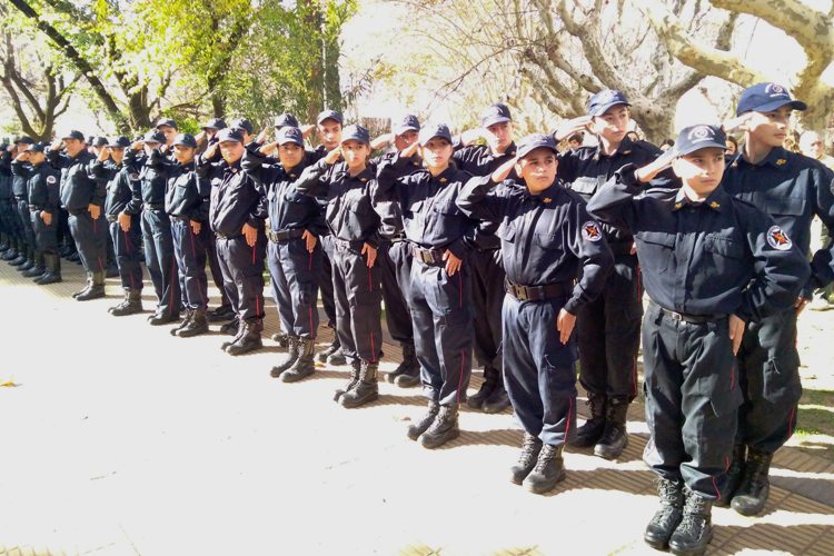 Abril González (13), Valentina Marcori (14), Carolina Penayo (13), Candelaria Primón (14) y Belén Santi (13) arrancaron en abril pasado la escuela de cadetes. Hasta los 16 años estarán formándose como cadetas para luego hacer el curso de ingreso y recién a los 18 podrán empezar a cumplir con los servicios.