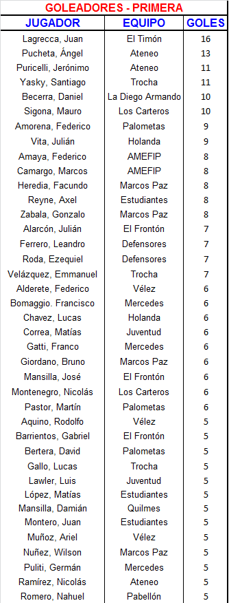En un torneo en el que cuesta conseguir atractivos, aunque hay dos zonas que se tornaron parejas, la fecha 20 del torneo de Primera División de la Liga Mercedina dejó algunos puntos para tener en cuenta. Uno de ellos fue la goleada de AMEFIP Barrio San Martín a Talleres Payró por 15 a 0, superando a la de Club Mercedes sobre Comunicaciones de 14 a 1 y la de Quilmes a Juventud de Suipacha de 14 a 0, ambas ocurridas en la última década.