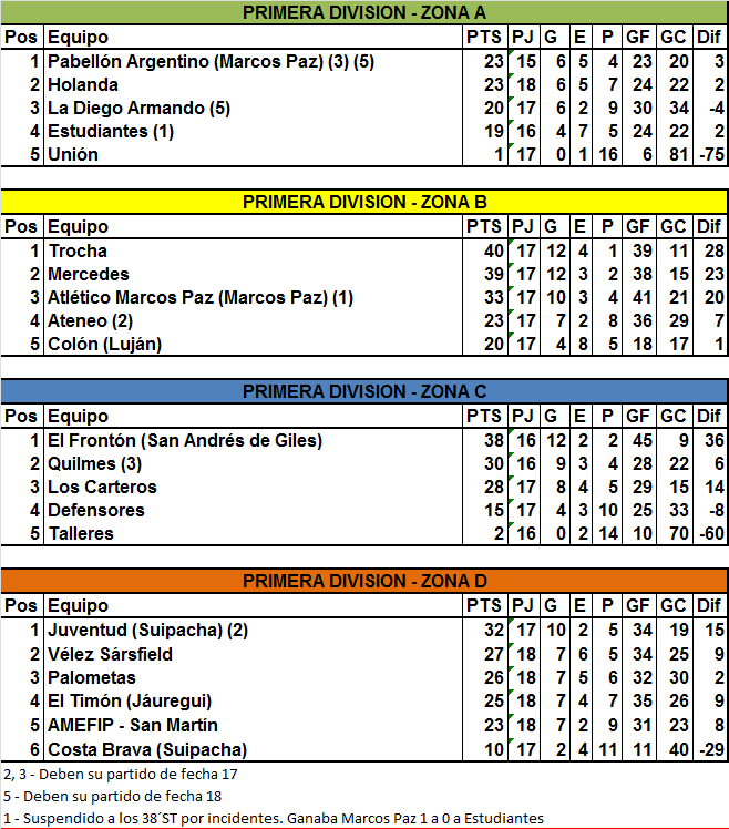 Por otra parte, en Marcos Paz, este domingo jugaba Atlético ante Estudiantes, pero a los 38 minutos del segundo tiempo y tras el gol convertido por Facundo Heredia, el encuentro se tuvo que suspender por una serie de agresiones que dejó sin garantías de juego al árbitro Viglietti y ahora se espera por su fallo para saber lo que determine el Tribunal de Disciplina.
