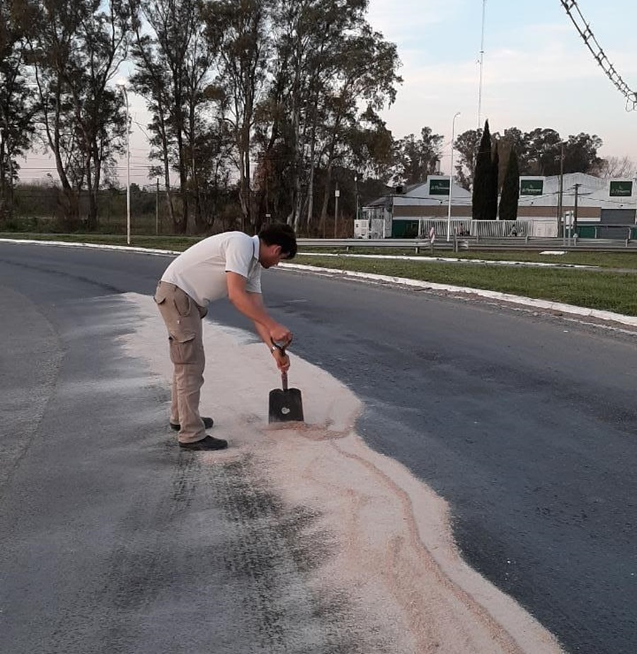 Se debió, junto a la Policía Comunal, guiar el tránsito y proceder con el «secado» del pavimento volcando materiales absorventes.
