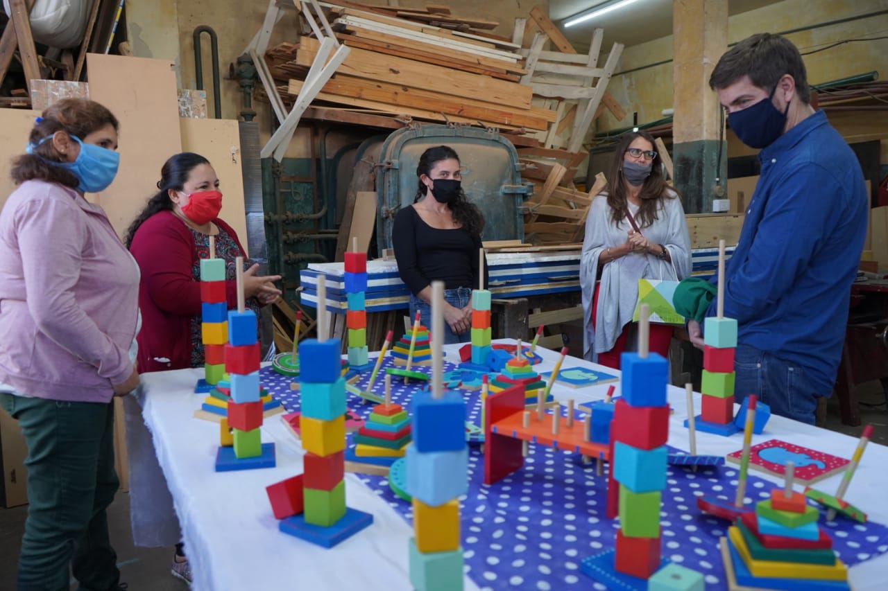 Una vez en el ex Unzué junto a la secretaria de desarrollo social Jorgelina Silva observaron el taller de Carpintería llevado a cabo por mujeres que hacen juguetes para el programa primeros mil días. Ellas son la profesora Ana de Cunto y las alumnas Marisa Cicilio y Mariana Saavedra. En el mismo predio también dialogaron y conocieron la experiencia de la cooperativa de mujeres “las albañielas” siendo ellas Daiana Sarubba, Sonia Barrionuevo, Paulina Agüero, Natalia Becerra, Amalia Maidana