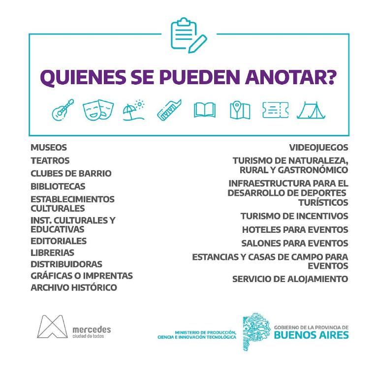 Tras diversas gestiones la Municipalidad de Mercedes ingresó al plan de “Catálogo Turístico y Cultural” que se trata de un fondo destinado a las comunas para que puedan acompañar a emprendedores turísticos y proyectos culturales a reabrir sus puertas post pandemia. Se trata de un apoyo con el objetivo de poder apoyar la implementación de protocolos de cuidados y prevención llegado el momento de reabrir las puertas e intervenciones socio culturales.