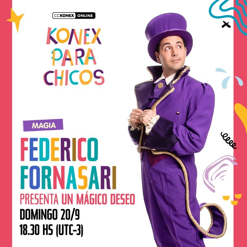 El mago mercedino Federico Fornasari realizará una nueva función virtual en el ciclo «Konex para Chicos». Con su show «Un Mágico Deseo» presentado en dos oportunidades con ingresos al sitio agotados, regresa el 20 de septiembre a la hora 18:30. Para adquirir el ingreso al espectáculo es necesario ingresar al sitio del CCKonex.