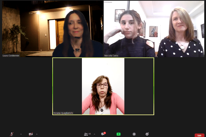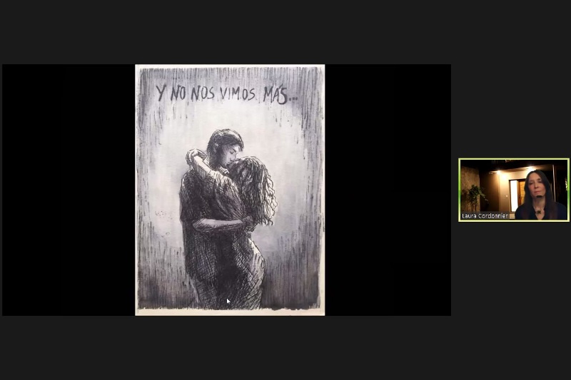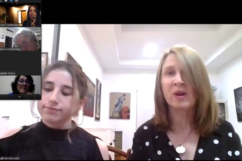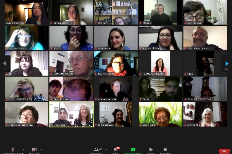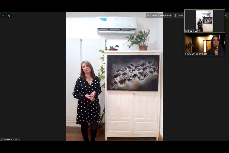 La cita en la plataforma zoom era a las diez de la noche del miércoles. A medida que cada uno de los participantes, desde Alberti, Laura Cordonnier daba la bienvenida y solicitaba que silencien micrófonos y cancelen las cámaras para empezar con la exposición de Marcela Cueto.