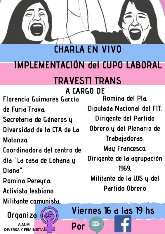 Este viernes 16 de octubre, 19 horas, la Asamblea de Mujeres Mercedinas llevará adelante un conversatorio en el marco de la difusión por la implementación del cupo laboral travesti-trans en nuestra ciudad. La Diputada Nacional Romina Del Pla, la activista lesbiana Romina Pereyra, la dirigente de la agrupación LGBT+ 1969 May Francesco y Florencia Guimares García de Furia Trava serán las responsables de exponer a través del encuentro virtual.
