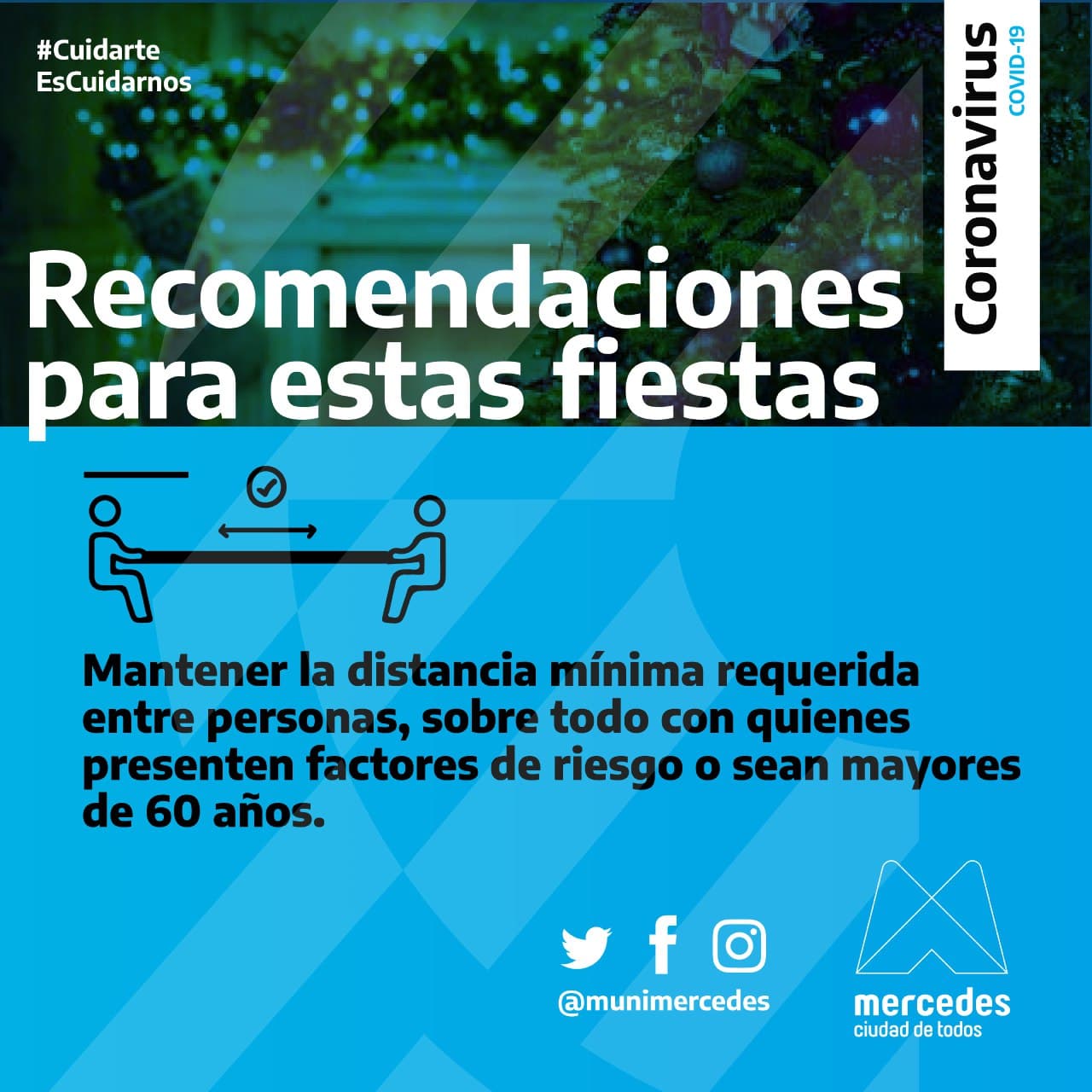 Desde la Municipalidad de Mercedes y la Dirección de Adultos Mayores hicieron pública una serie de recomendaciones para tener en cuenta a la hora de organizar las fiestas y encuentros para estas fiestas.