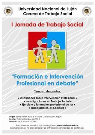 La Carrera Licenciatura en Trabajo Social de la Universidad Nacional de Luján, junto al Departamento de Ciencias Sociales de la Casa organiza la I Jornada de la Carrera de Trabajo Social “Formación e Intervención Profesional en debate”, que se llevará a cabo el 9 de septiembre de 8.30 a 19, en la Sede Central Luján.