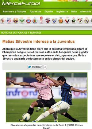 Otro que sonó fuerte en los portales españoles e italianos es Matias Silvestre quién sería pretendido ni más ni menos que por la Juventus dado el buen rendimiento que el ex Boca está teniendo en el Calcio Italiano.