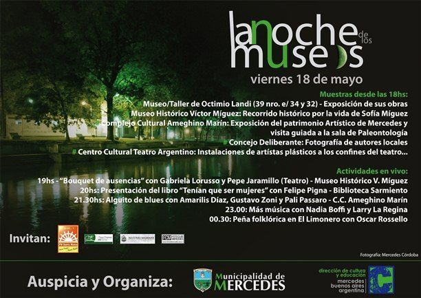 · Exposición fotográfica de autores locales en el Concejo Deliberante (Av. 29 Nº 575) y foyer del Teatro Argentino (calle 27 Nº 578, 1º piso). Invita: Foto Club Mercedes y la Dirección de Cultura y Educación