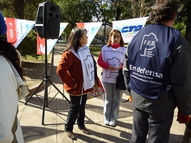 Tanto los representantes del SUTEBA como de la UEB local( Recordamos que responden a la FEB ) sostuvieron “los trabajadores estatales bonaerenses le decimos NO al pago desdoblado de nuestro aguinaldo, NO al recorte en los salarios, NO a la falta de cupos en los comedores escolares, NO a la falta de fondos para infraestructura escolar”.