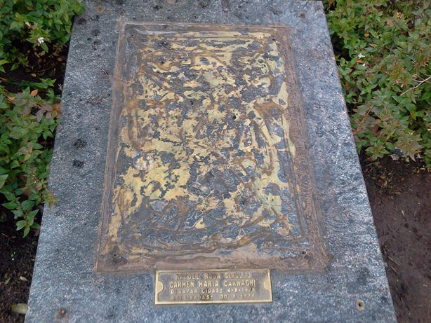 En esta ocasión durante el fin de semana volvió a desaparecer la placa. El espacio muestra claramente la ausencia de la misma quedando las marcas del viejo producto adhesivo y el contorno del marco de la placa homenaje ausente.