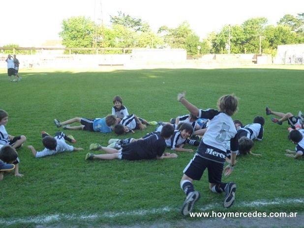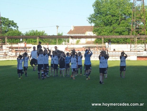 Los más chicos del Club Mercedes tuvieron su festejo en el campo de la Liga Mercedina de Fútbol en el entretiempo del partido que disputaron Mercedes y Villa Belgrano.