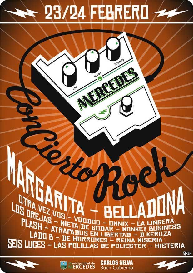 Nuevamente Mercedes tendrá un gran encuentro popular durante el fin de semana del 23 y 24 de febrero con una nueva edición del “Mercedes ConCierto Rock” en plena avenida 29. Las jornadas a puro rock reunirán 16 bandas locales de las cuales tres, elegidas por un jurado, podrán tocar el 9 de marzo en un nuevo festival en el Martín Rodríguez compartiendo escenario con una gran banda nacional que se conocerá los próximos días, pero, que es de las más grandes del país. Los encuentros significan el regreso de “Margarita” y “Belladona” a la ciudad cerrando cada una de las noches.