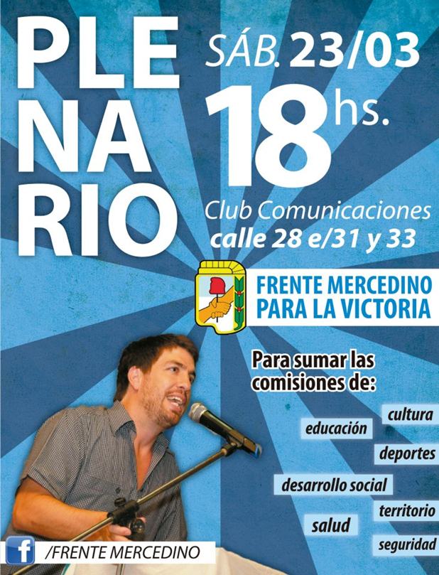 Desde la agrupación sostienen: «se realizará el sábado que viene, en la sede de la calle 28 del Club Comunicaciones y a partir de las 18, su plenario de comisiones de cara a 2013. Allí, los distintos equipos del Frente presentarán su plan de acción para todo el año. “Vamos a programar distintas actividades y estructurar una agenda para el 2013 –explicó ‘Juani’ Ustarroz-. No es un plenario cerrado sino que está abierto a todos los vecinos que quieran sumarse y participar de las distintas comisiones. La idea, como siempre, es tratar de trabajar con toda la gente de Mercedes y para toda la gente de Mercedes”.