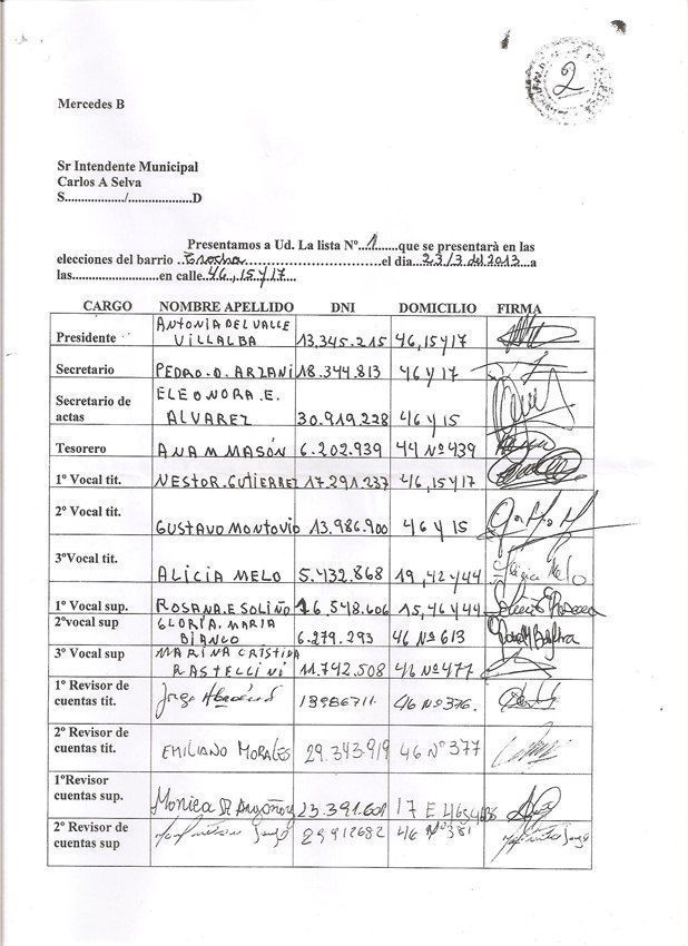 Acta y lista completa de la conformación de la nueva conducción barrial: