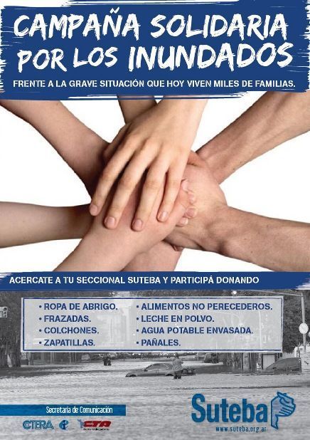La agrupación gremial en nuestra ciudad, que nuclea trabajadores de la educación, también es parte de las instituciones que desplegaron acciones por los afectados del temporal en La Plata.