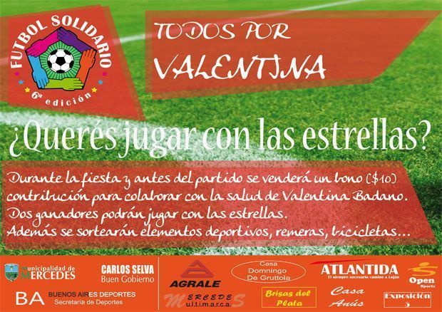 Durante la próxima edición del Fútbol Solidario se llevará a cabo un nuevo acto solidario. Se trata de la venta de un bono solidario para apoyar el tratamiento médico de una joven mercedina que está realizando una serie de tratamientos médicos muy importante. Se trata de Valentina.