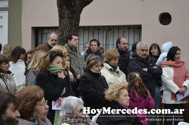 La bendición estuvo a cargo del Padre Tom de San Patricio quién afirmó: “Creo que conocemos ahora un poco más la vida de Carlos Martín, ese corazón grande, lleno de amor por los suyos, creo que es importante, que lo han amado y lo van a seguir amando y es importante para los más pequeños que sepan quién es, ya lo saben, pero olvidarse es una segunda muerte. Pensaba cuando dolor y cuántos los han apoyado en ese dolor que los ha sostenido. También debemos pensar en ellos. Pensar que los asesinos son personas, porque algunas viven todavía, personas formadas para defender a otros argentinos. Eso nos duele, saber que de acá de Mercedes han planificado y participado de esos hechos. Asesinos. Eso nos duele. Nosotros como comunidad Palotina sentimos el apoyo de tantos mercedinos, y más allá, ante la muerte de nuestros hermanos. Personas jóvenes que entraron en las casas para asesinar. Cometer un crimen. ¿Por qué? ¿Para qué? ¿En nombre de qué? Creemos en la verdad, en la justicia y ante todo en velar por el buen nombre de ellos. El prestigio de los que han muerto en la represión del gobierno Cívico Militar. Por eso quisiera pedir por ellos, por su familia y por todos los que han estado siempre. Cuando uno quiere alguien le da un lugar especial en su corazón. Este testimonio va a ayudar a muchos jóvenes saber que alguien lucho por el bien de todos.”