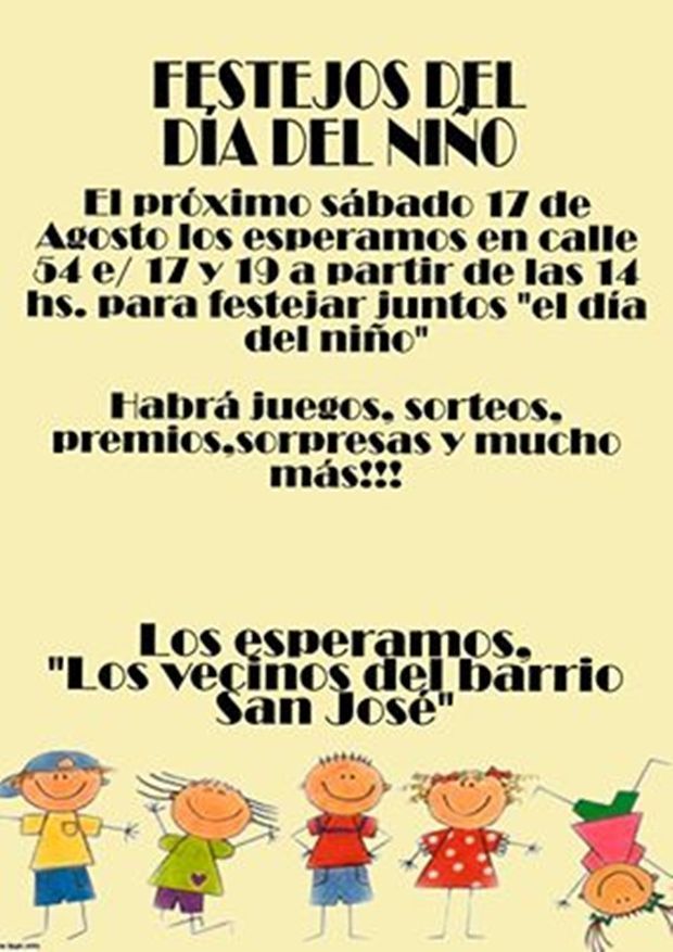 Este sábado parte de la barriada de San José se encuentra preparando un festejo con los más pequeños. Se busca los niños de la barriada y la zona tengan una jornada dedicada a ellos donde no falte ningún elemento de alegría.