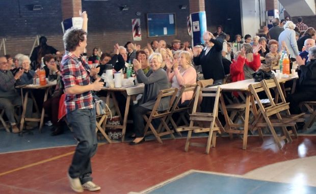Las actividades en el gimnasio que el club Estudiantes tiene en la calle 33 (entre 14 y 16) comenzaron al mediodía, con la llegada progresiva de los abuelos. Cada uno aportó a su mesa alguna de sus especialidades culinarias, aunque en la cantina había un refuerzo de choripanes y bebidas libres para todos. Al promediar el almuerzo, Mariano Anido y Valeria Castro Maini, pura simpatía, se hicieron cargo de la conducción de los espectáculos.