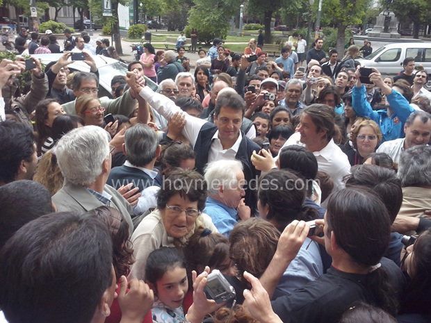Sergio Massa, cuando efectuó su discurso para los presentes manifestó: “estamos en la calle, construyendo un paso más de ese sueño que pusimos en marcha hace nada más que cuatro meses un grupo chiquito de intendentes que sentimos venía un tiempo de dejar de discutir la historia de Argentina para empezar a proponer las soluciones a los problemas de la Argentina. Un grupo de intendentes que eligió el camino difícil, un camino para muchos incómodo que es el de decir con firmeza, con la voz levantada, con autoridad, que cosas nos gustan y que no y sostenerlo sin miedo, a pesar que para muchos termina siendo una afrenta o una crítica fácil. Lo único que hicimos hace cuatro meses es agarrar la posta de cada calle, cada rinconcito de nuestros municipio es tomar la palabra de la gente que está cansada de convivir con la inseguridad, que está angustiada de que la inflación le come más el sueldo, que la jubilación no le alcanza y los precios suben, que cada vez más sienten que el sistema educativo va perdiendo calidad entonces los pibes terminan encontrándose con la dificultad de que el colegio a dejado de ser en el caso del sistema público centro de referencias por faltas. Aprovechar la realidad que vivimos, que las nuevas tecnologías nos tienen que permitir, formar pibes, nativos digitales, de una manera distinta. Intendentes que nos animamos a plantear qué cosas eran importantes y qué secundarias y algunos frente a ello por lo bajo nos decían cuanta razón tienen, algunos hasta el último día cuando decidimos iniciar esta patriada nos dijeron vamos a estar con ustedes. Es para los que tienen valor, coraje, para los que sientes que más importante que la opinión de algún dirigente, que algún lugar institucional, en política más importante es representar los sueños, las inquietudes de la gente. Por eso quería estar acá, vengo a decirle a los mercedinos que tienen un intendente que tuvo el coraje de pelear por su sueños parte de un equipo que no tiene más ganas de discutir el pasado de la argentina, que tiene ganas de ser protagonistas del futuro de la Argentina. Que tienen un intendente que sabe decir sin miedo las cosas que siente cada uno de los mercedino y por eso el domingo les quiero pedir a todos los mercedinos, radicales, peronistas, vecinalistas, independientes que cuando vayan a la urna nos acompañen pensando en sus hijos y nietos, pero, sobre todo acompañen a Carlos y Bozzini en el futuro de Mercedes. Somos un mismo cuerpo, un mismo proyecto, no corten la boleta. Voten por futuro.”