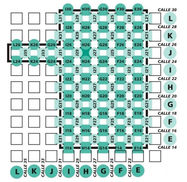 De calle 30 a 14 y de 21 a 31. La 24 y la 26 hasta 37 y sus cruces de 31 a 37.