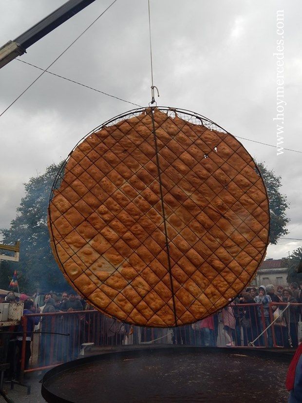 La torta frita más grande del país volvió a convertirse en un atractivo singular. La sartén se utilizó con 350 kilos de grasa de cerdo proveniente de Giles, 8 torteras amasaron 8 kilos de harina cada una, es decir, un total de 64 kilos de harina para generar una gran masa que se estipula pesa cerca de 600 kilos una vez unida y finalizada. La levantaron como es ya tradicional con una grúa, la frieron y la compartieron con los presentes.