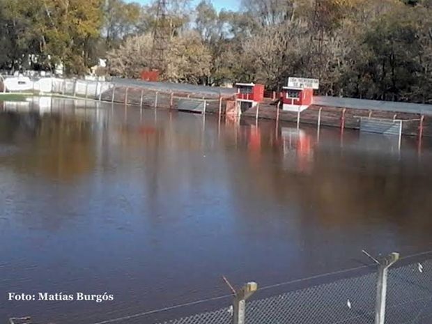 El Estadio de la Liga Mercedina de Fútbol también mostró un panorama de agua y más agua. Nuevamente las zonas más afectadas fueron el Peñaloza y Marchetti. Algunas zonas, como en San Jacinto, el agua y el barrio también anegó caminos.