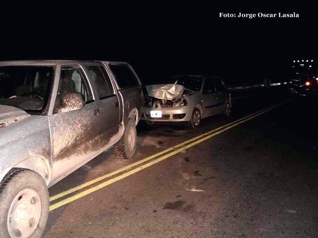 El tractor remolcaba un acoplado rural de dos ejes por la ruta en dirección a Mercedes, a baja velocidad y es embestido por una camioneta Pick Up Chevrolet S-10 en la que viajaba un matrimonio de San Martín que tras impactar recibe, también de atrás, un golpe de un auto Renault Clio generando así el choque entre tres. Por los impactos el acoplado, sin luces ni para golpes trasero, quedó montado en la baranda del puente.