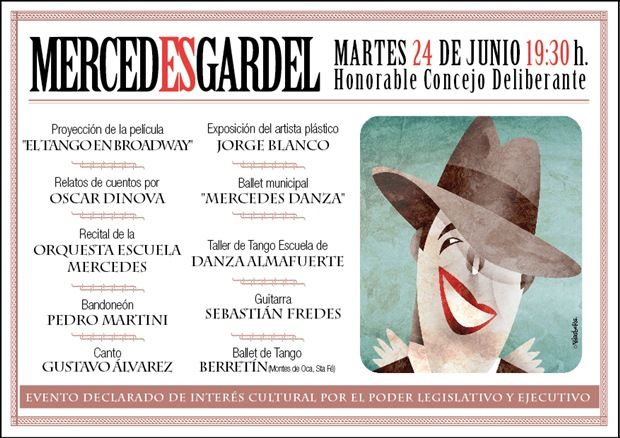 (DC) La Municipalidad de Mercedes a través de la Dirección de Cultura y Educación en el 79° aniversario del paso a la inmortalidad del máximo exponente de nuestra canción ciudadana, Carlos Gardel, se complace en presentar el evento homenaje “MercedEsGardel”, a realizarse el próximo martes 24 de Junio a las 17.30 hs. en el recinto del Honorable Concejo Deliberante.